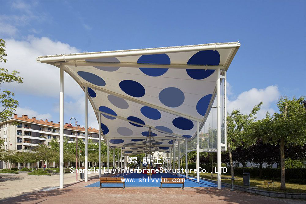 ;綠蔭一直致力于新型產品的開發與研究。產品內容:建筑膜結構、網球場膜結構、景觀張拉膜結構、汽車棚膜結構、自行車棚膜結構、收費站膜結構、體育場膜結構、看臺膜結構、站臺膜結構、加油站膜結構、鋼膜結構、索膜結構、商業街膜結構、污水池膜結構、廣場膜結構、入口膜結構、停車場膜結構、屋頂膜結構、走廊膜結構、泳池膜結構、遮陽車棚、膜結構雨棚、園林膜結構、膜結構篷房、張拉膜結構、PVC膜車棚、PTFE膜車棚、ETFE膜車棚、二氧化碳膜車棚、網格膜車棚、帆布車棚、陽光板車棚、膜結構停車棚、公園膜結構、門廳膜結構。在建筑形式與設計方法上不斷創新。從材料采購、加工、制作到產品運輸、現場施工、安裝的全過程都受到嚴格的質量控制。并按照ISO9001質量體系認證標準要求執行